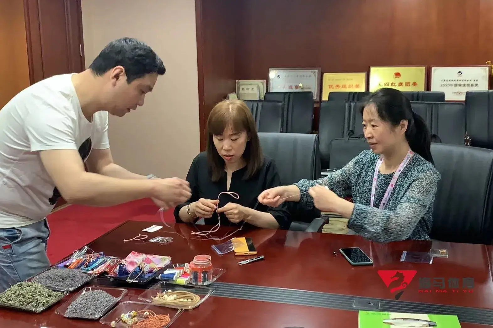 制作前,长征娱乐的手工老师首先介绍了端午的习俗以及端午节制作香囊与五彩绳的来历,让大家在活动前了解端午的民俗文化,手工老师将精心准备的有着美好寓意的五色彩绳、色彩绚丽的香包袋以及清香的艾草薰衣草,送到职员手中,携手制作香包和五彩绳。